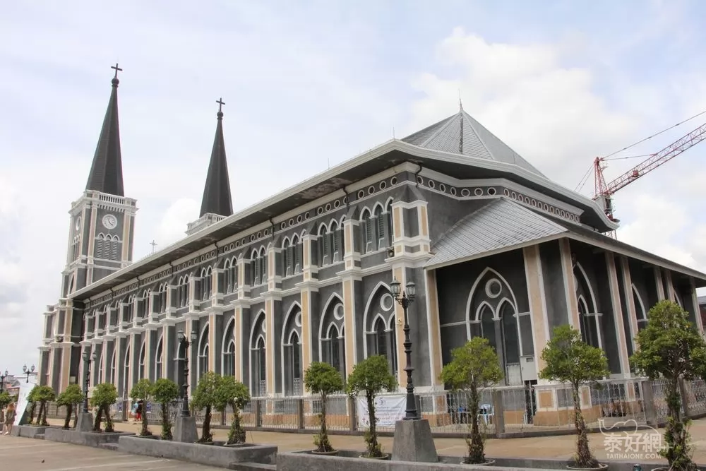 這座典型的哥德式建築教堂,坐落在Chanthanimit路上,座東朝西,規模宏大。