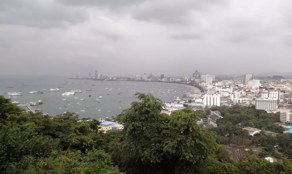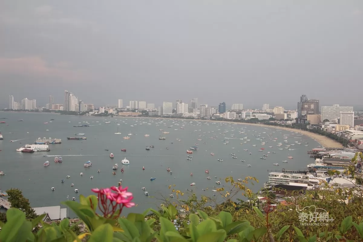 來到Pratamnak山上,你可以看到芭達雅的海灣全景,圓弧型海岸線,櫛比鱗次的高樓大廈和熱鬧的市區,海面上來來往往的船隻穿梭個不停。