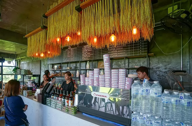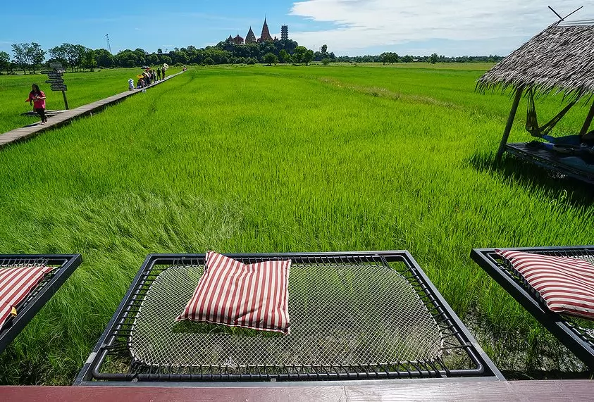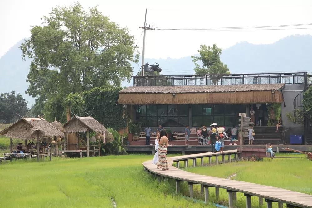 360度放眼望去是一片綠油油的稻田,再過去是雄偉的寺廟和佛像美景,擁有如此場景的米納咖啡(Meena Café),想在網路不紅也難!
