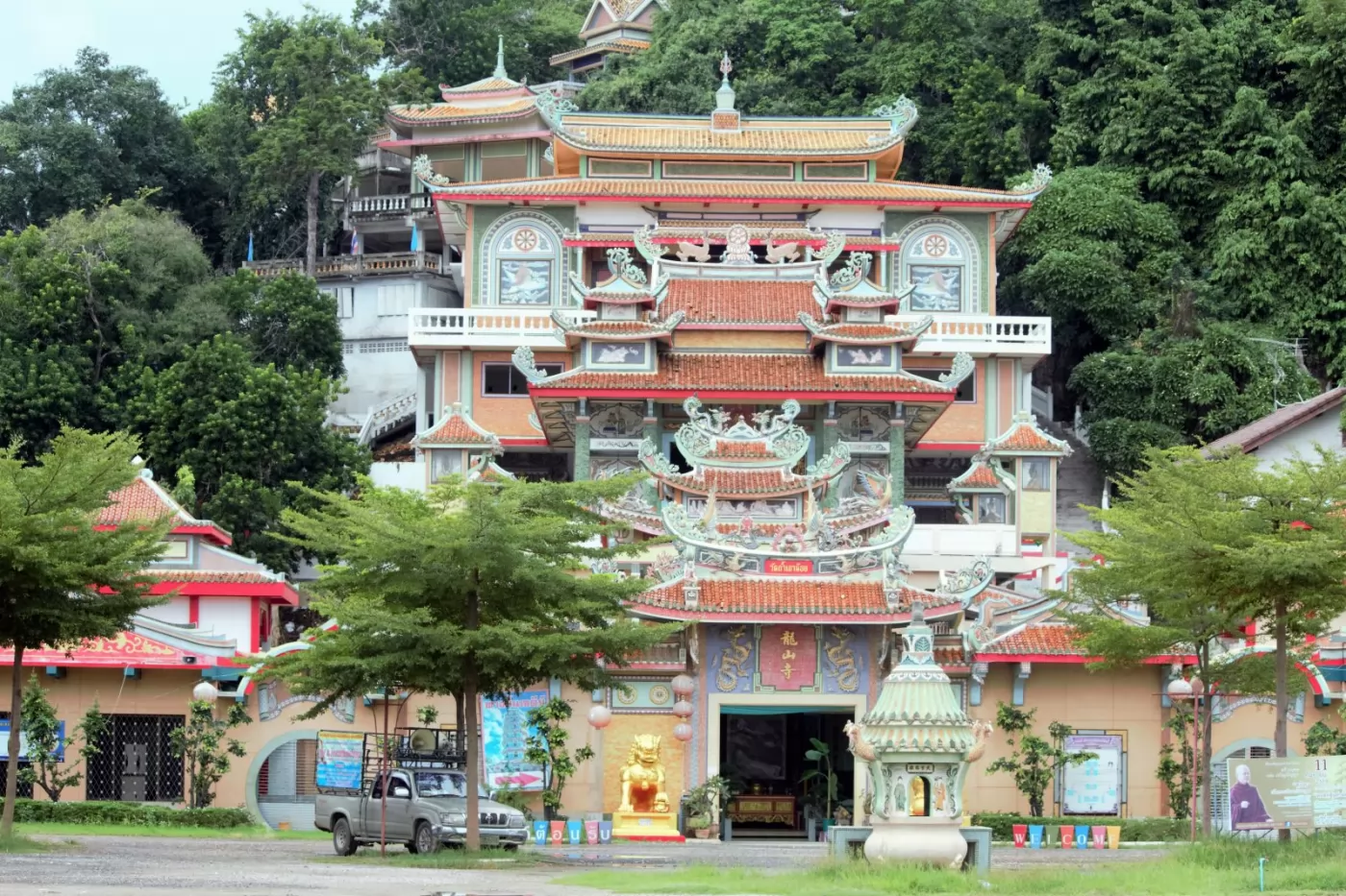 西元1883年有中國人遷移到北碧府建龍山寺(Wat Tham Khao Noi),依山勢分層建築而上,最下層寺院,正門入口處有兩隻金色閃亮的獅子,門上懸掛「龍山寺」的匾額,氣勢不凡。其他廟宇循階梯修建而上,總共7層。