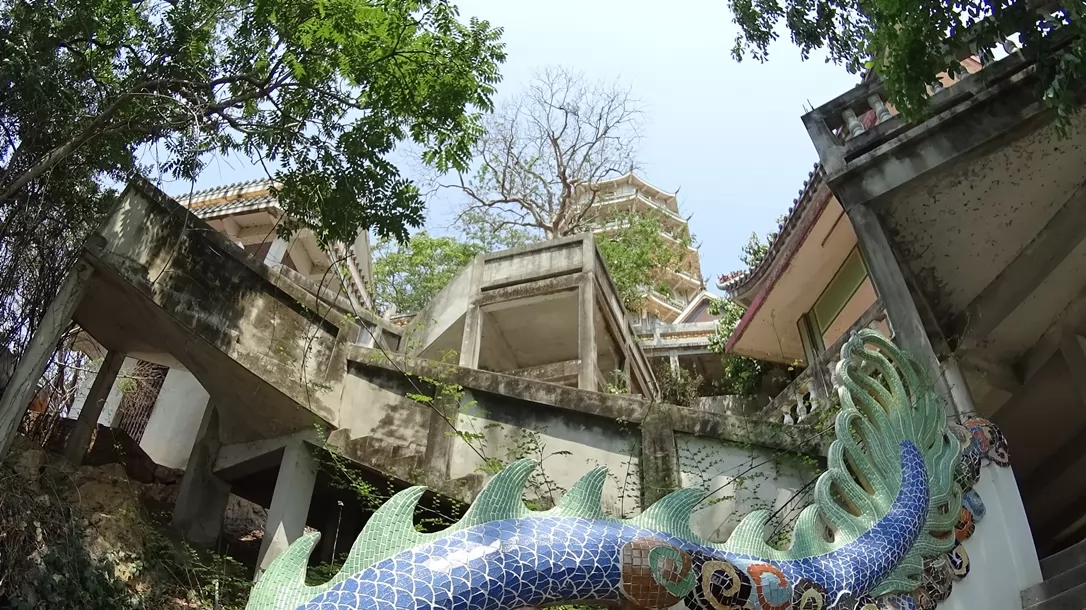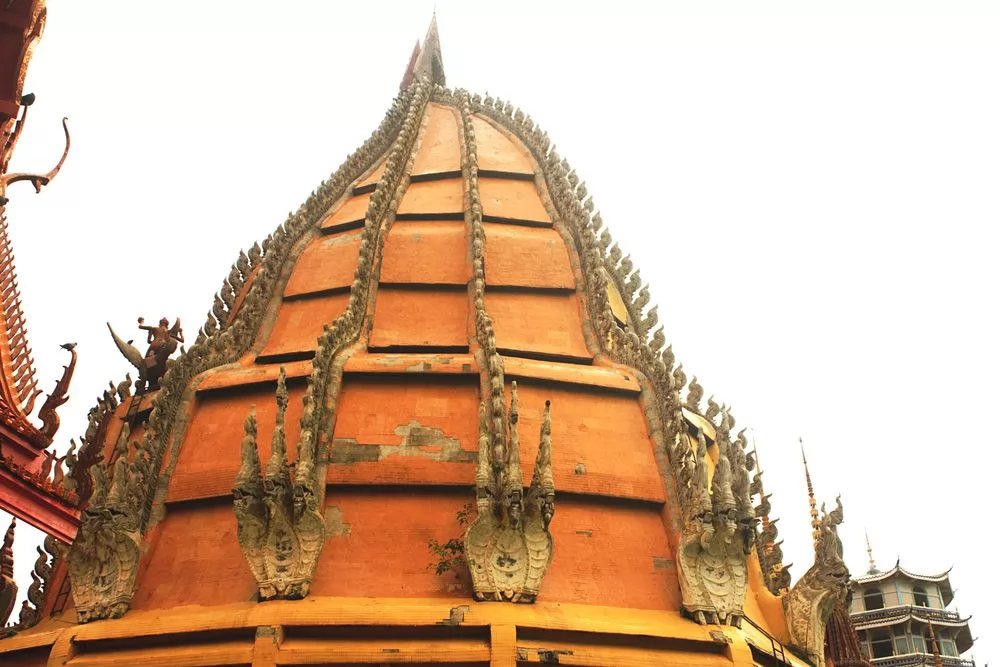 虎穴寺不只有這一尊大佛,也有泰國傳統的寺廟和印度式的佛塔,與後方龍山寺的寶塔相互輝映,展現出北碧府多族融合的特色。