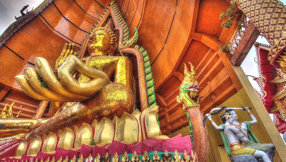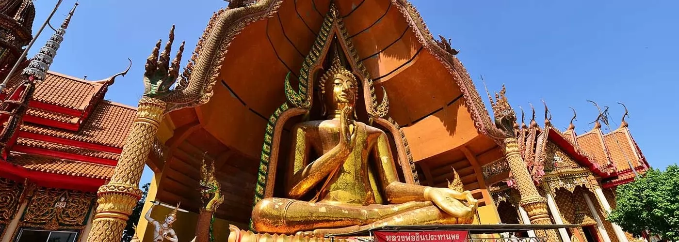 最初也只是一間小寺院佛曆2516年,信眾集資增建,才有現在如此宏偉的寺廟,供奉1尊高達18米的金色大佛,遠遠就能看到,非常壯觀。