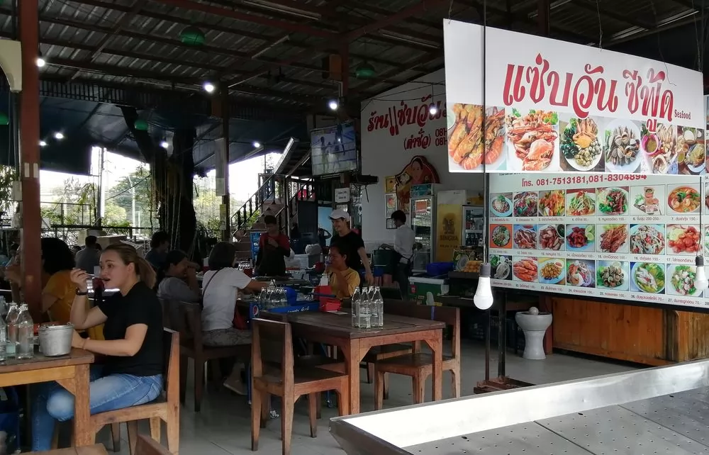 Zaab One(แซ่บวันรัชดา)在Ratchada路上,Big C對面,是曼谷有名的東北菜餐廳。