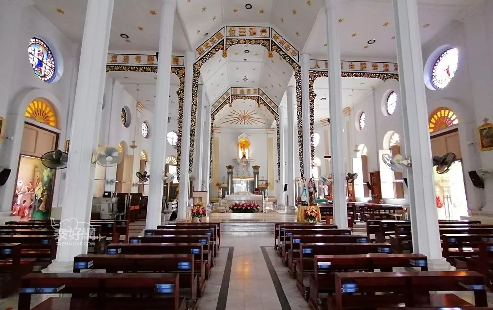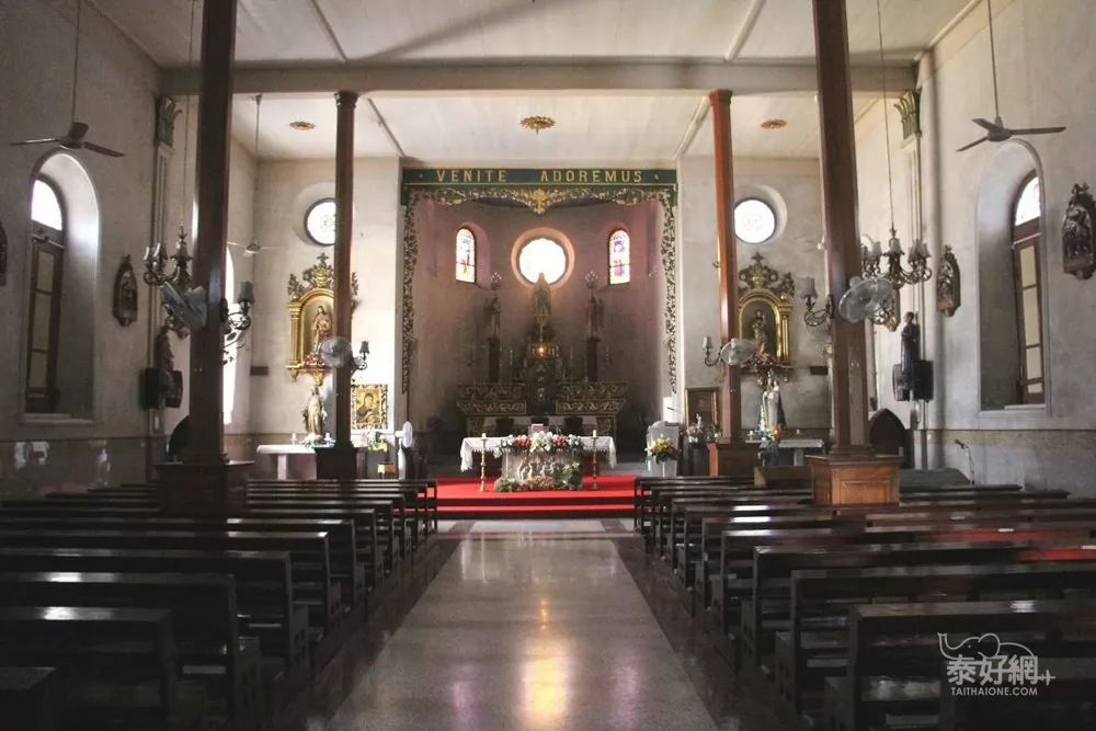 這座教堂簡樸精美,由泰國和荷蘭的建築風格混搭而成,隱藏在巷弄裡。