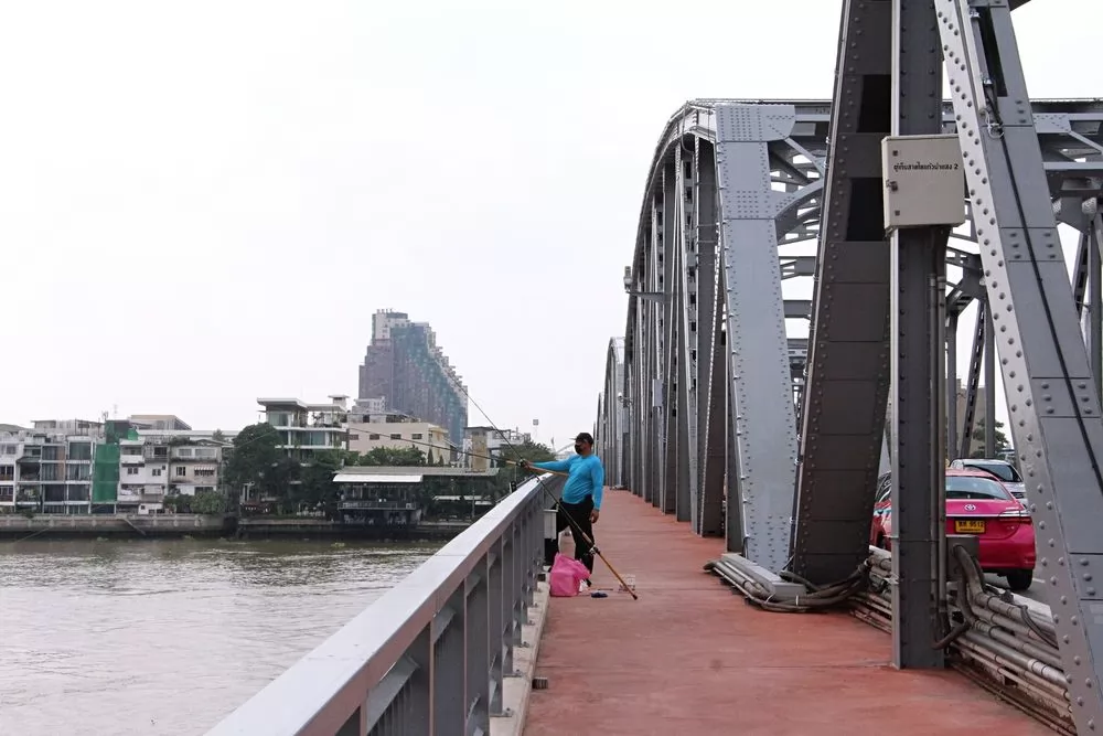 落日前可以來橋上走走,欣賞到湄南河景,一邊打卡拍照,一邊看日落。很多人都喜歡來這裡散心,也能看人悠閒釣魚。