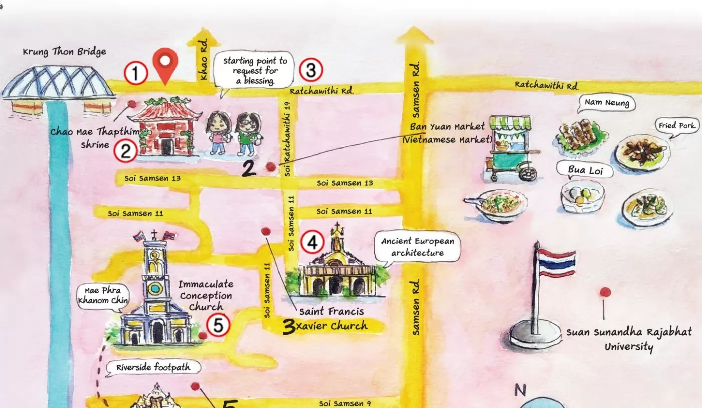 曼谷老城杜喜(Dusit)區的山盛(Samsen)周邊被稱為越南杜區,這裡兩百年多前就是越南人移居之地,有很多越南美食,還保留著天主教堂。