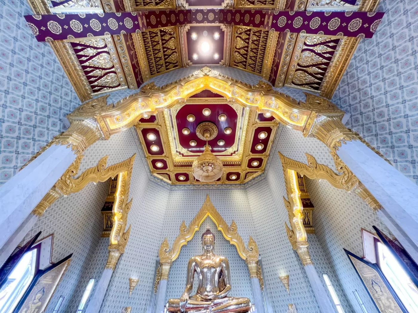 這尊世界上最大的金佛像,是伏魔姿態的金佛像,高3公尺、厚1.5寸、重5.5噸、純度70%,兩眼球用80克拉藍寶石鑲成,據估計,價值1億多美元,號稱世界第一,可說是泰國和佛教的無價寶。