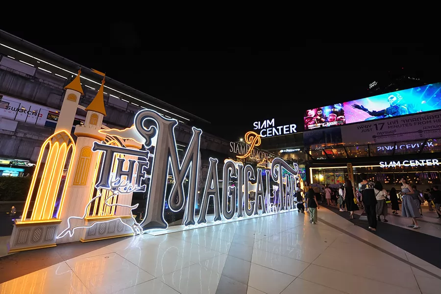 Siam Paragon延續以「巫師世界裡的聖誕節」為主題!打造出魔法故事(The Magical Tale)裡的白紙城堡場景,超過110名魔法小精靈活躍在其中,另外佈置與Siam Paragon標誌一致的金色燈光通道,吸引眾多遊客前來拍照打卡。