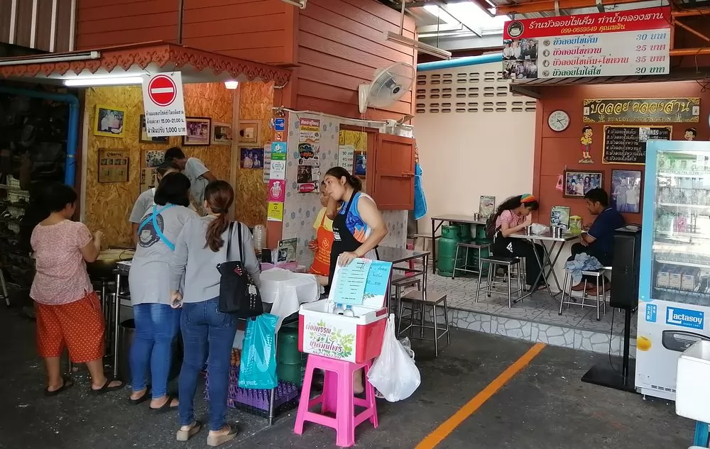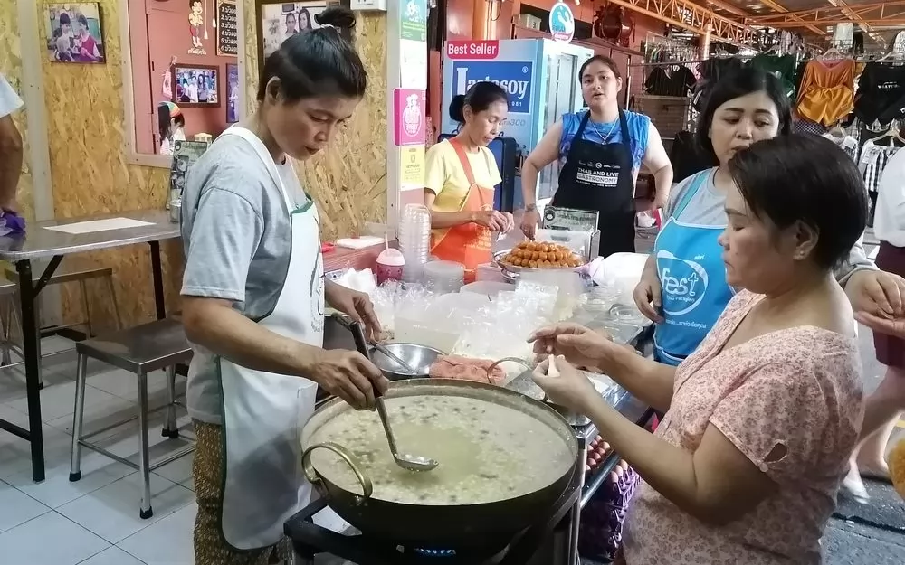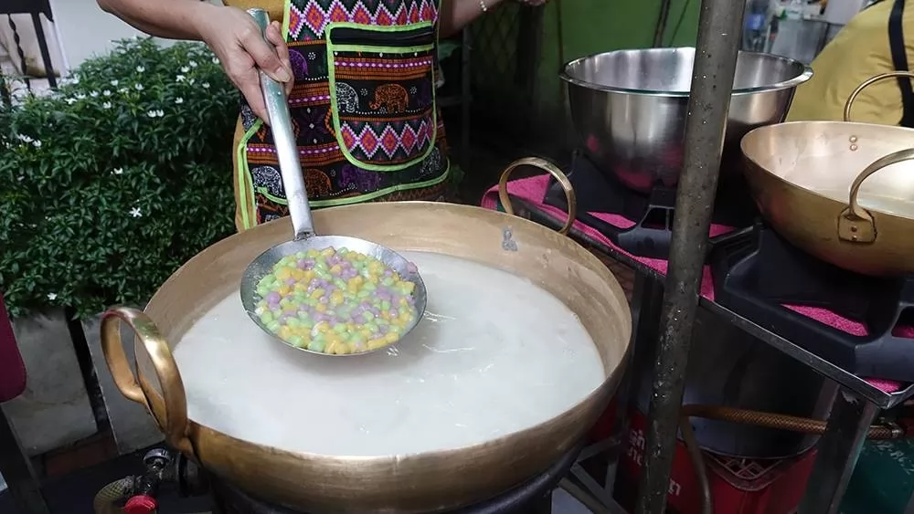 這家的湯圓,五顏六色,超有顏值,而且吃起來,厚實充滿嚼勁,配上香濃椰漿,甜而不膩令人齒頰留香。可以選擇加入玉米粒、新鮮椰果,芋頭等配料,或加入1顆新鮮雞蛋補充營養,價格在30-40銖之間。