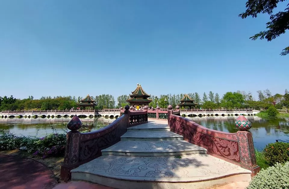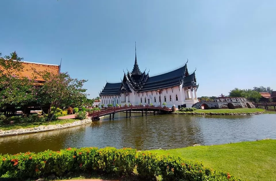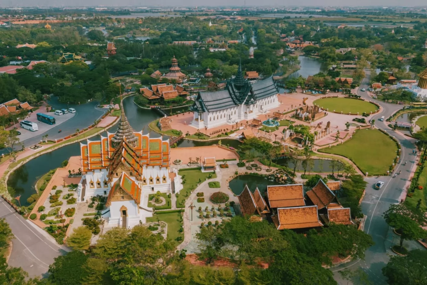 1963年開始動工,經過10幾年的心血與超過10億泰銖的投資,建成這個「世界最大的戶外博物館」,許多景點都與真實名勝景區相同比例(1:1)建成,到此遊覽時,宛如遍覽了泰國風光。