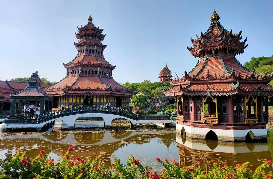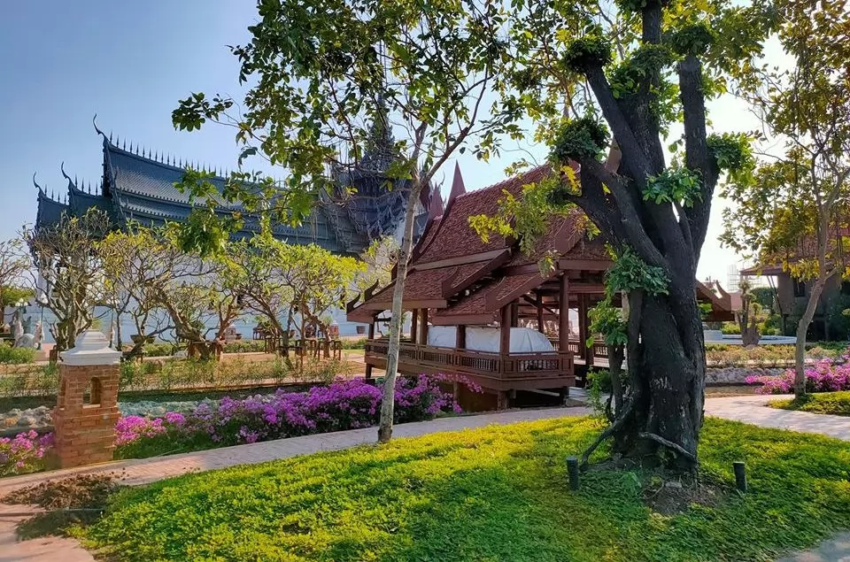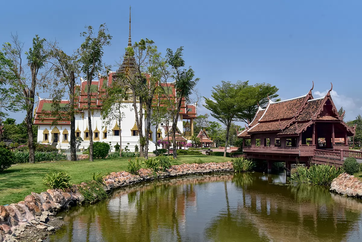 這些名勝景點,有的是仿照原建築大小,其它比例則為實物三分之一的。景物中有從各府運來的寶物,可說是薈萃泰國建築的瑰寶,因而又有「小泰國」之稱。