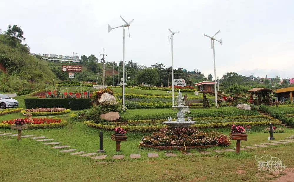 第二天吃完早餐,7點多退房去看雲海,來到考柯的公路段,有個แทนรัก的民宿,這裡是最有人氣的觀看雲海景點,有美麗的花園和裝飾供遊客拍照,更重要的是可以清楚看到寬廣的雲海。
