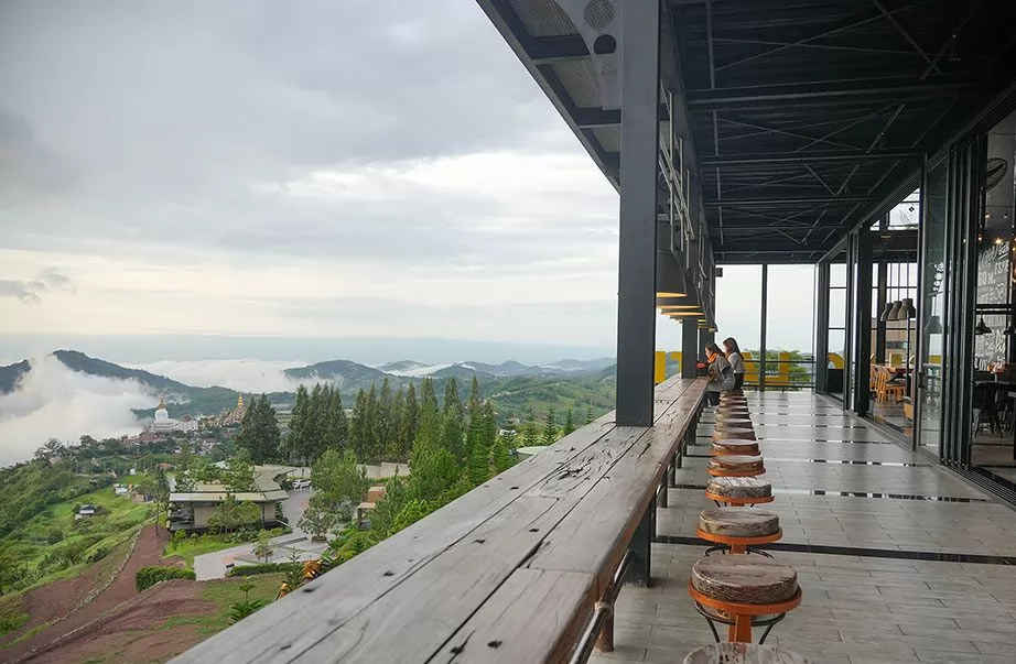 到考柯,Pino Latte咖啡店是非來不可,因為能看到連綿的群山、雲海、考柯知名的帕素角寺,光是這樣就足夠成為網紅景點,吸引大批人潮。