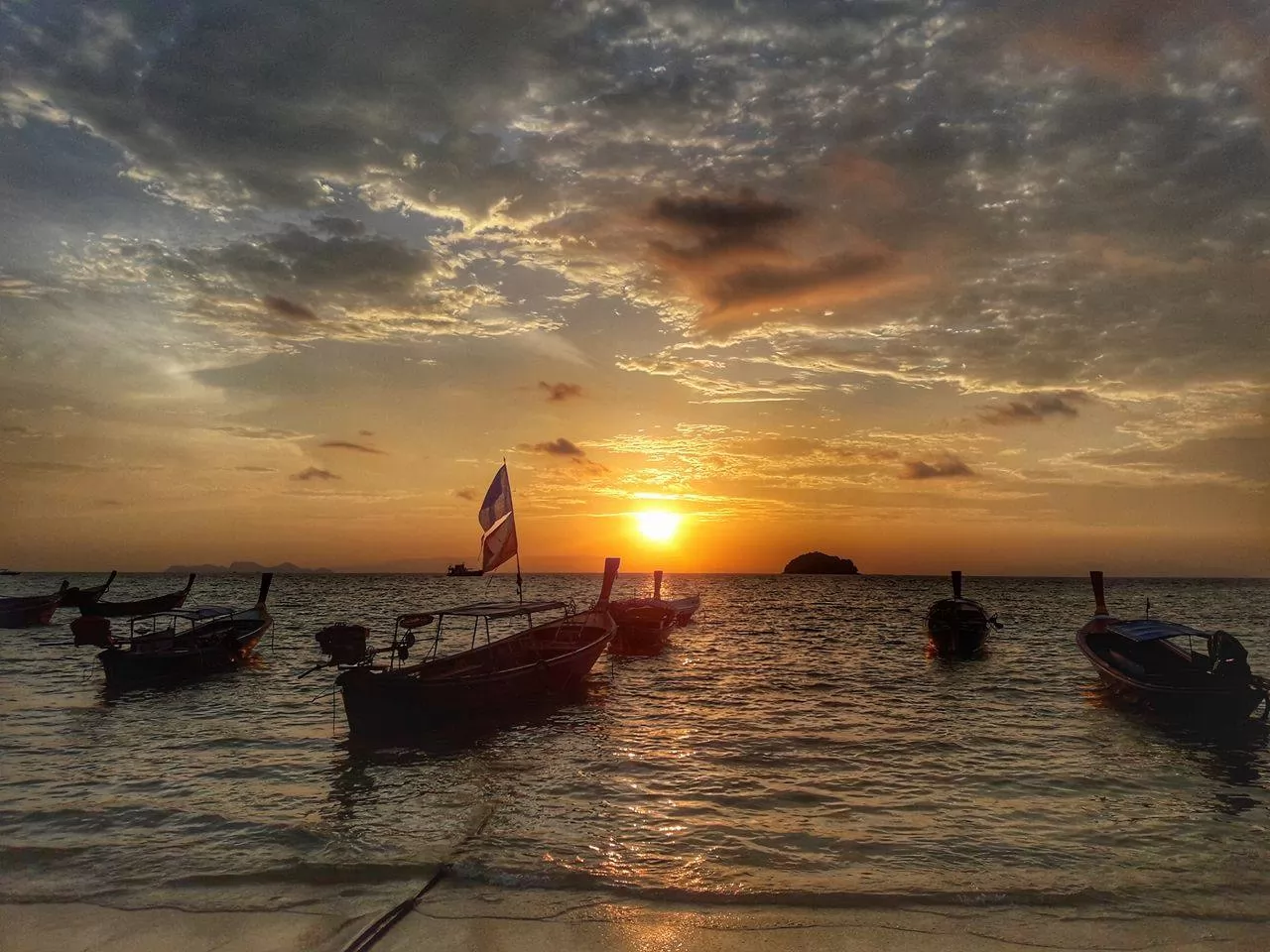 除了潔白的沙灘及清澈的海水外,麗貝島還有極美的日出,天沒亮就得移步至島東側的日出海灘,如果天公作美,可以看到圓紅的太陽從海平面那端緩緩升起,四射的陽光照在和岸邊的小船,以及隨潮汐而來的浪花也泛起金黃色,天空白雲流竄,用普通的手機就能拍出絕美的照片。