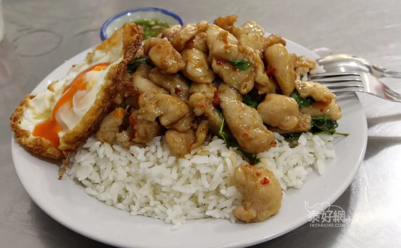 本店沒有太多菜品可供選擇,只有兩種,即大蒜雞肉(ไก่กระเทียม)和打拋雞肉(กระเพราไก่),象哥認為這家店值得推薦,有以下幾個簡單的理由: