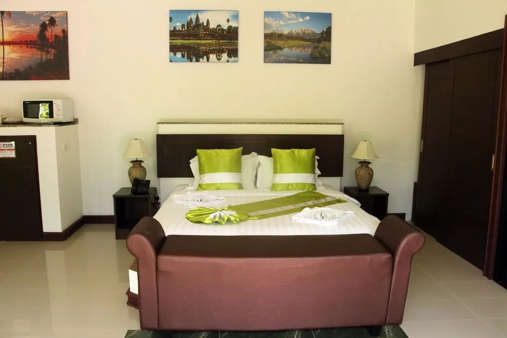客房分雙人和家庭房,所有客房都有空調、平面有線電視、DVD 播放機、衣櫃、水壺以及附淋浴和吹風機等,客人可盡情使用熱水按摩池。