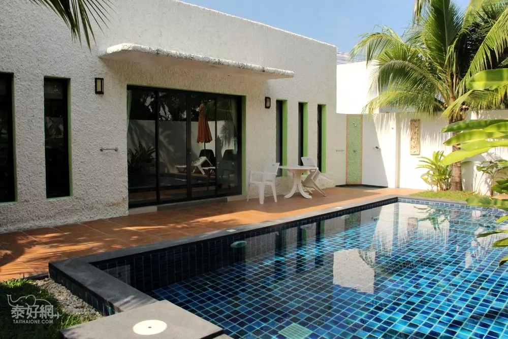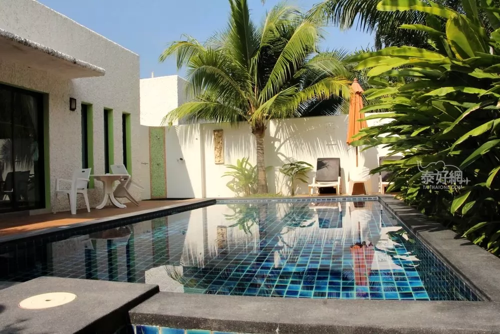 在這充滿椰林風味的白色別墅裡面,有著自己私人的泳池,房客可以無拘無束在泳池內玩水,不用擔心外人來打擾。旁邊有躺椅,想曬太陽或是看書都很方便,完全可以過著與世隔絕的世界,享受美好的度假時光。