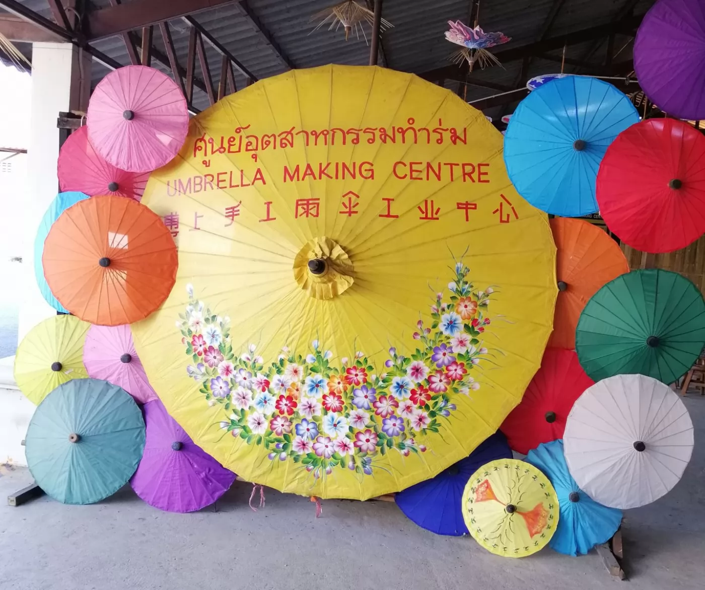 在山甘烹區的波盛(Bo Sang)村,專門出產泰北傳統手工藝—油紙傘,有兩百多年的歷史,在清邁非常著名,也是全泰國最大的油紙傘生產地。