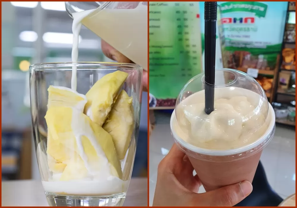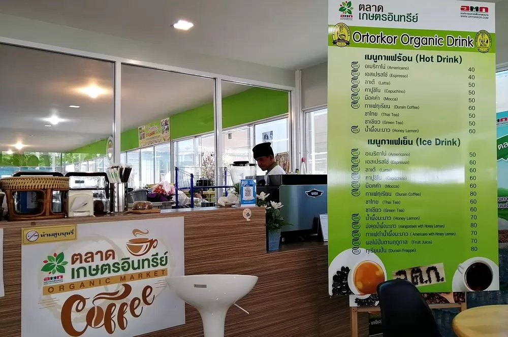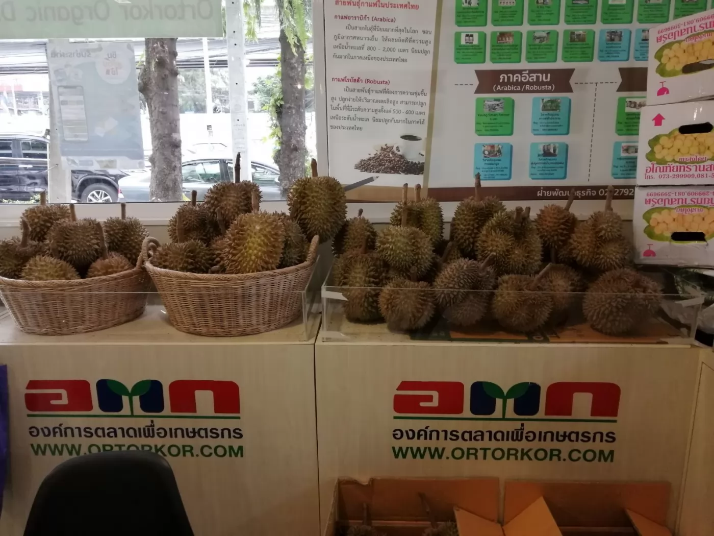 曼谷喔多哥(Or tor kor;อ.ต.ก)市場,有機農產品區有家飲品店(Ortorkor Organic Drink;กาแฟทุเรียนออร์แกนิก),很特別!在這裡你可以喝到有機榴槤咖啡,可以說是榴槤粉的天堂了!