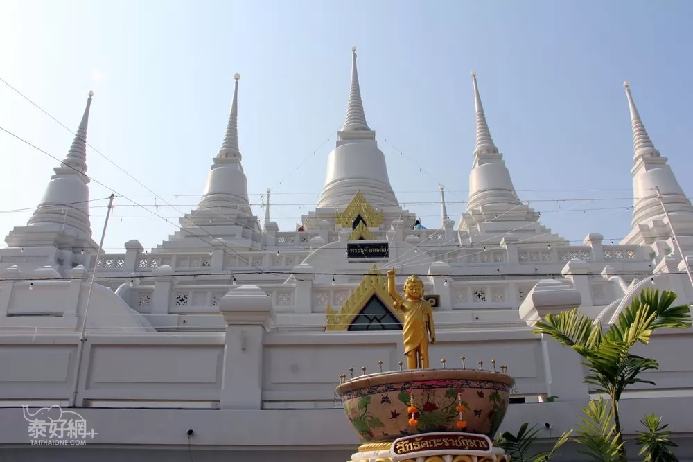 寺院最引人注目的當屬這白色佛塔建築,Phra Thutangkha chedi (พระธุตังคเจดีย์),有13座佛塔綜合而成的白色建築,代表著13名傳教長老。