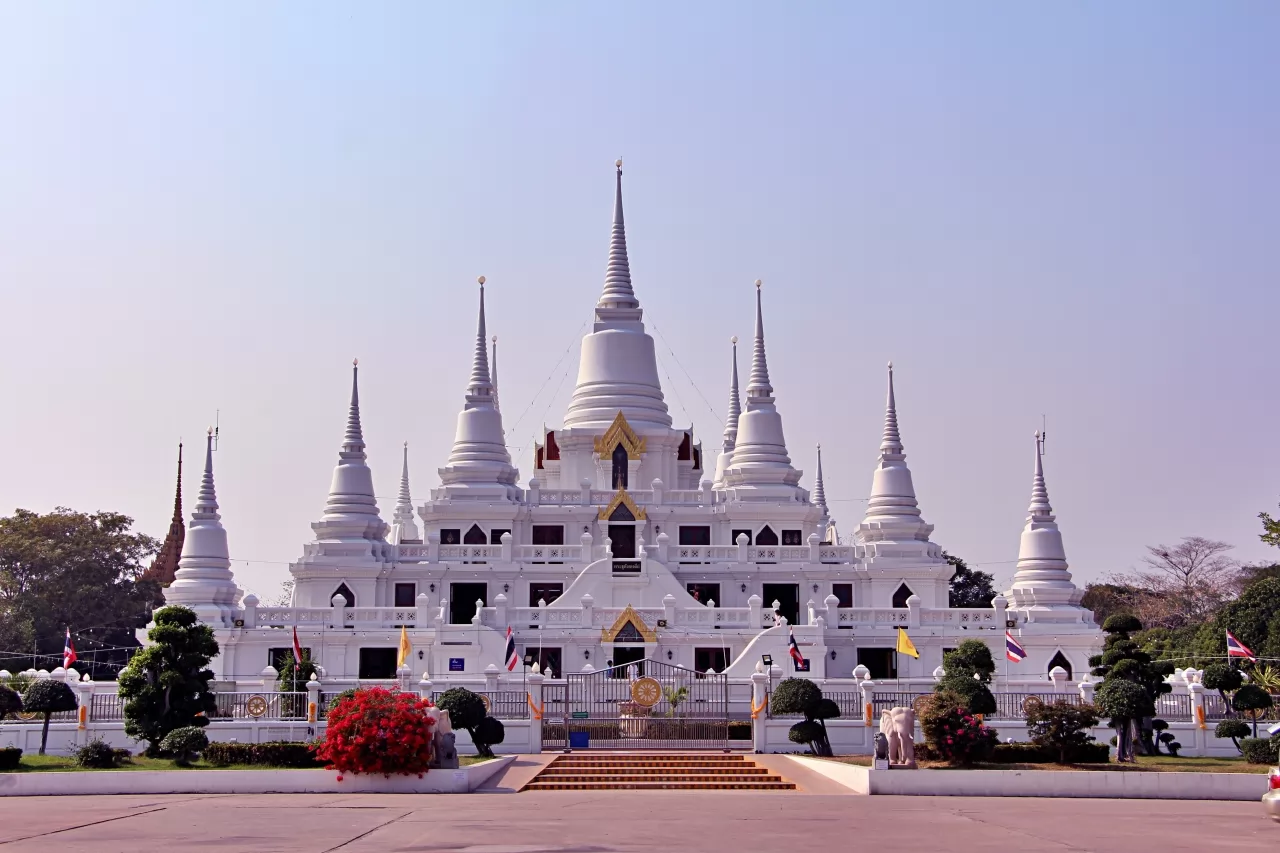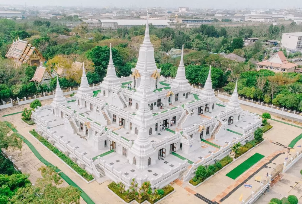 白佛塔寺Wat Asokaram (วัดอโศการาม),據說中文寺名為「無憂寺」,曼谷周邊北欖(Samut Prakan)府有名的寺廟,也是泰國知名的美麗佛寺,喜歡攝影或泰國建築的人不容錯過。