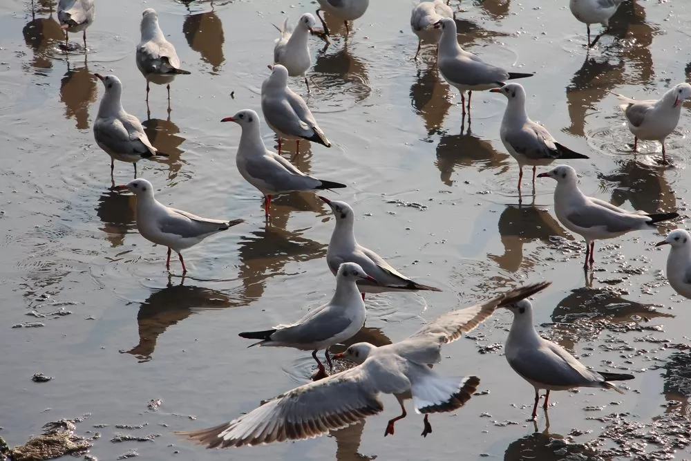 這裡的海鷗不是整年都能看到,每年11月到次年3月的冬季,因為抵卸寒冬的侵襲,成千上萬隻海鷗,從遙遠的西伯利亞、中國蒙古、西藏等地區往南方遷徙,沿著海邊覓食而來,在邦浦這片溫暖的海岸找到絕佳的過冬地。