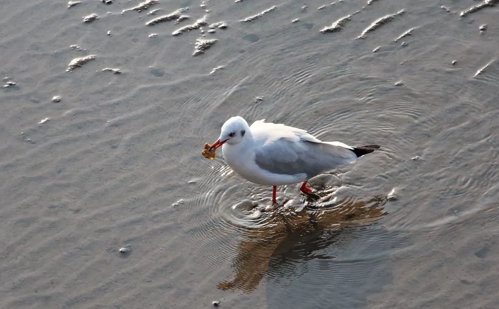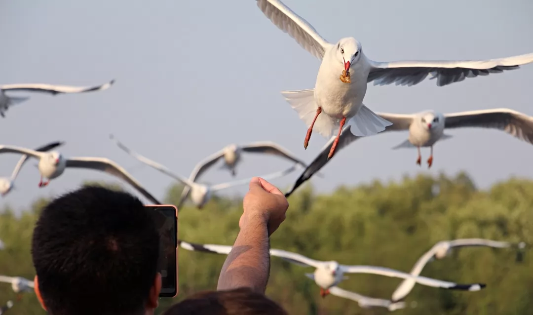 因為網紅的照片,來邦浦海濱的遊客,一定要拍張餵食海鷗的照片。