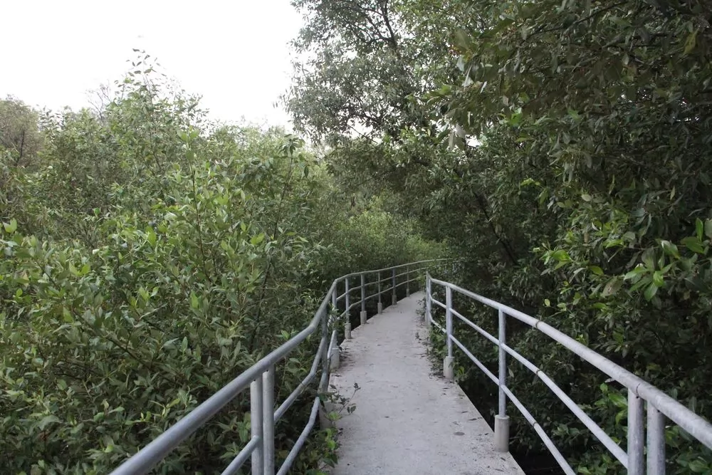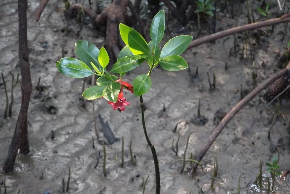 在去水海鷗之前,可以先去參觀紅樹林,有小路讓遊客很容易走進紅樹林,素達橋左右各有200公尺的堤岸走道,可以近距離的看到在泥濘地生長的植物、以及樹枝頭上綻放的紅花。