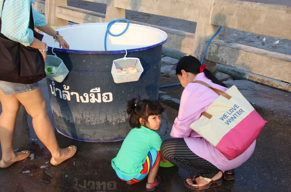 餵食完之後,旁邊還免費提供肥皂和清水來洗手,再用毛巾擦乾手。