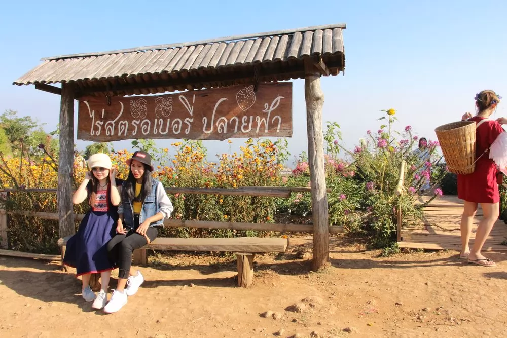 盡情享受多姿多彩的花田美景,這裡還有草莓園和葡萄園,年初是草莓季節,1盒新鮮的草莓50銖起跳,可買回去送禮!