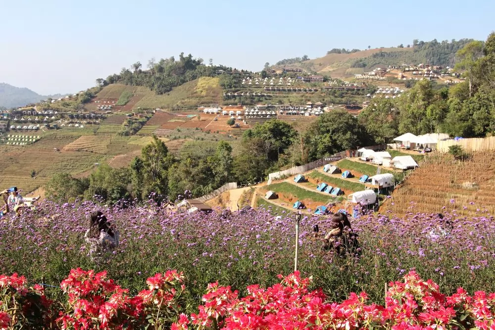 Verbena (ทุ่งดอกเวอร์บีน่า)花田:經典的熱門景點,年底則是薰衣草季節,遍野的紫色,滿足女孩們的浪漫小心思,漫步在紫色和綠色交錯的薰衣草花海之中,宛如一幅美麗的油畫,令人十分享受。