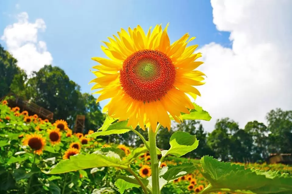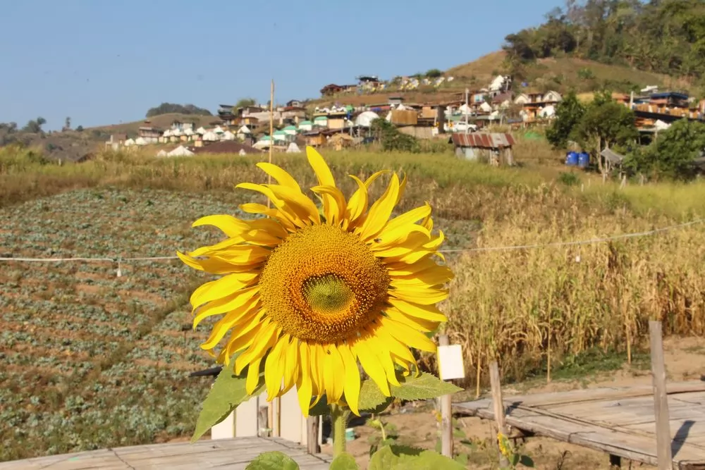 另一邊是向日葵(ภูเก็บตะวัน)花田,每年10月尾至11月尾是向日葵盛開的季節,朵朵又黃又大的向日葵佈滿整個花田,何其壯觀!遊客爭相拍照。
