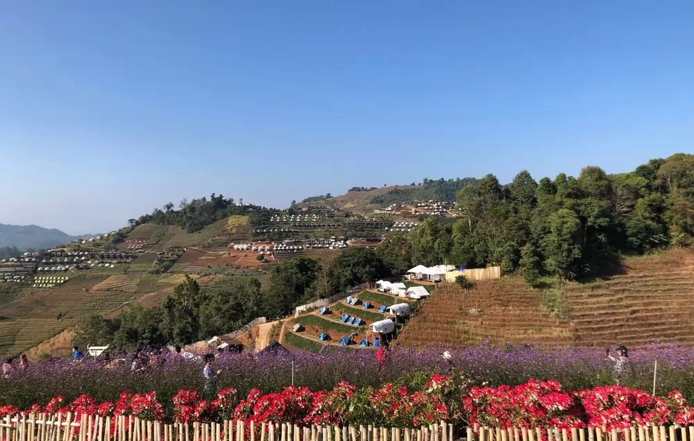 沿山坡而建,花種最多,數量也是最澎湃。有一級級的梯田做背景,隨便用手機一拍都可以拍到花海的效果,雖然收費相對最高(50銖)但也是非常合理。