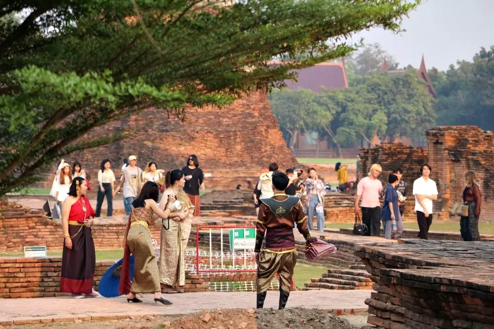這個舉世聞名的寺廟,因為是知名的大城古裝劇「天生一對」的拍攝點,吸引很多泰國人及外國觀光客身著泰式古裝,穿越時空來這裡拍照打卡。