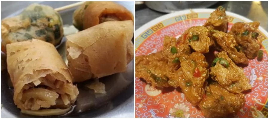 除此之外,這裡也有賣炸春捲,所有的春捲都是現做,酥皮裹著春捲,放入手推車旁的鍋中油炸,讓每位食客都能看到,吃得開心,吃得放心。有四種餡料可供選擇:蝦、芋頭、竹筍和韭菜。輕輕地咬一口,立刻聽到表皮酥脆的聲音,內陷飽滿,讓你大飽口福,搭配黃瓜與甜辣椒醬,正好緩解炸春捲的油膩口感。