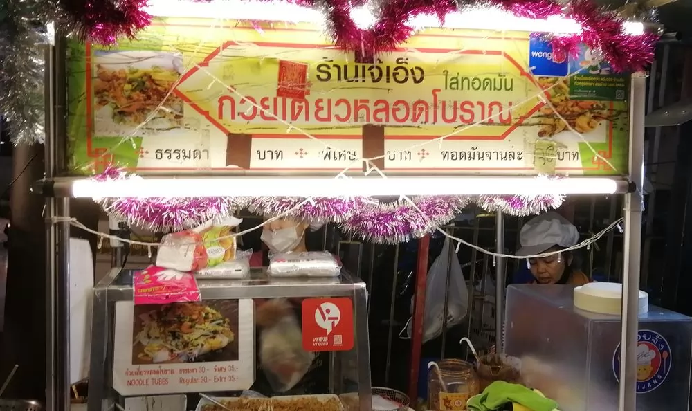 在曼谷唐人街的眾多路邊美食中, 恩姐傳統乾拌麵(Jay Eng – Kuay teow lawd boran;ร้านเจ๊เอ็ง ก้วยเตียวหลอดโบราณ)絕對不能錯過!