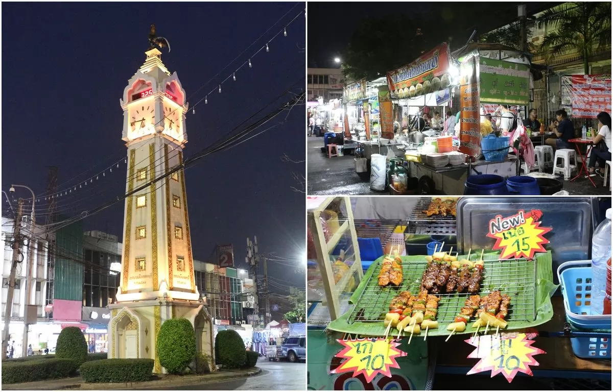 傍晚坐摩托車到河岸碼頭,搭到對岸的暖武里碼頭,在雞頂鐘樓周邊有眾多的美食攤,吃完海鮮等傳統美食後搭車回曼谷,結束這一日遊的行程。