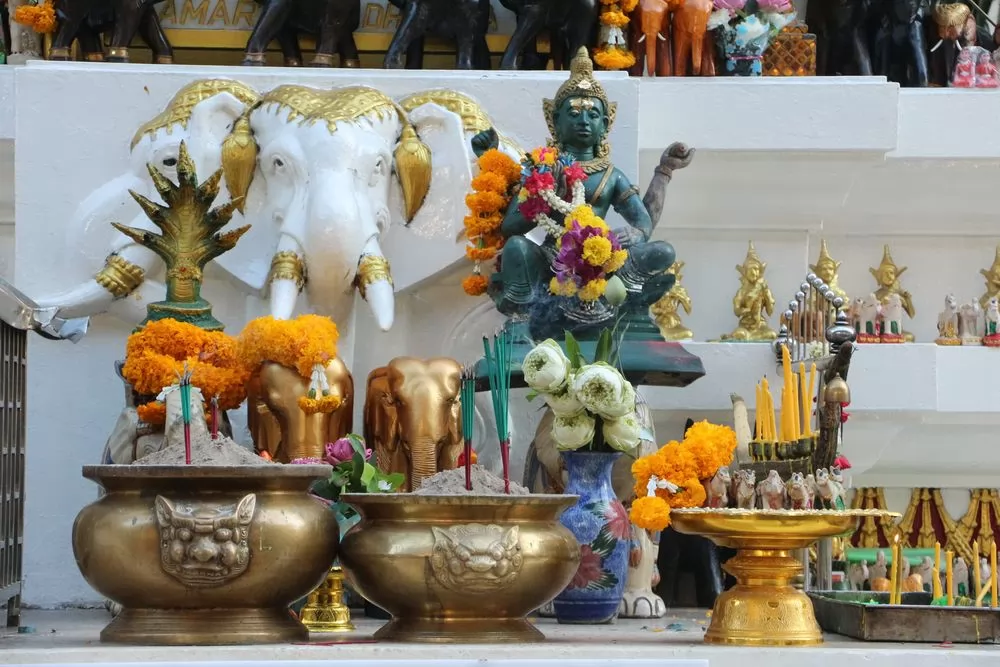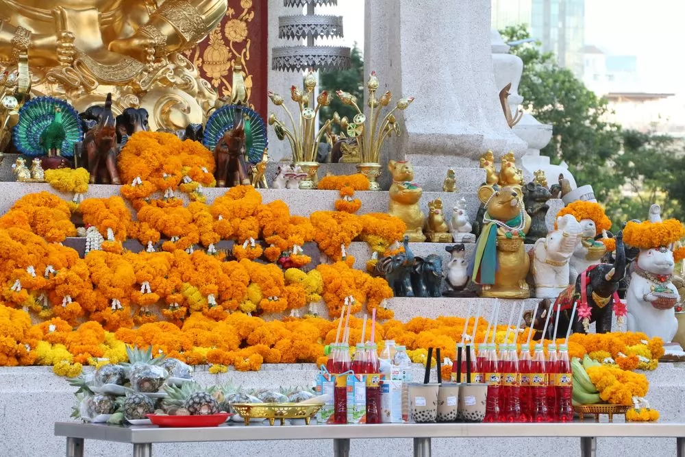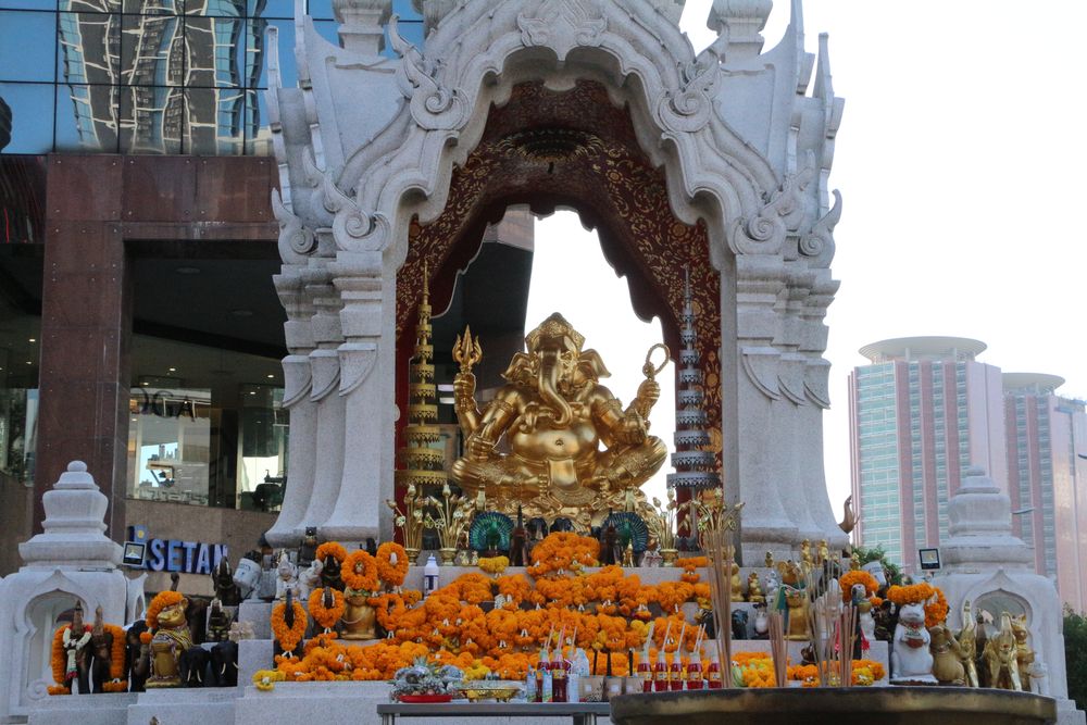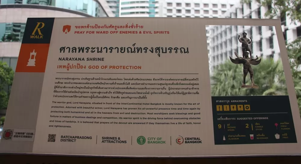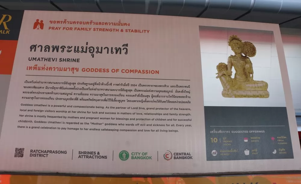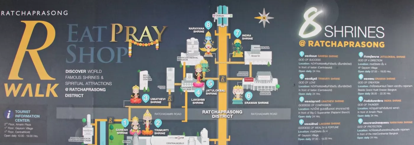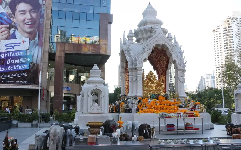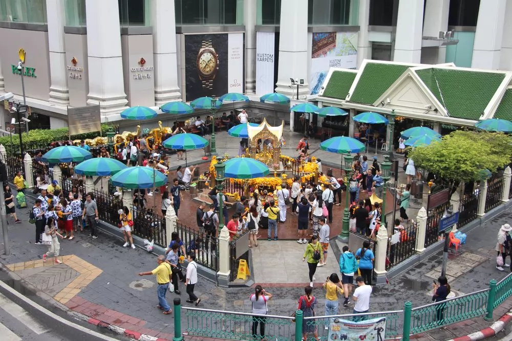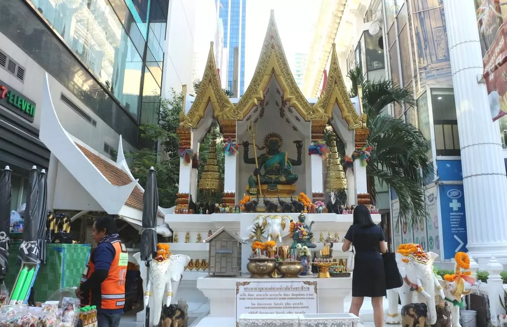 叻差巴頌區(Ratchaprasong)是曼谷重要商圈,也是是宗教聖地之一,這一帶的神祇香火旺盛,據說,用鮮花及供品向神祇祈福許願,都會如願以償。