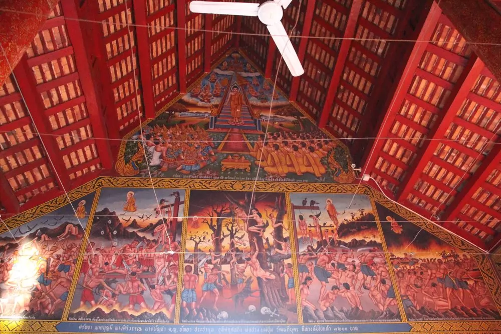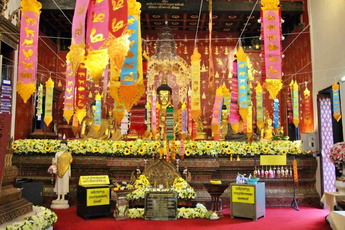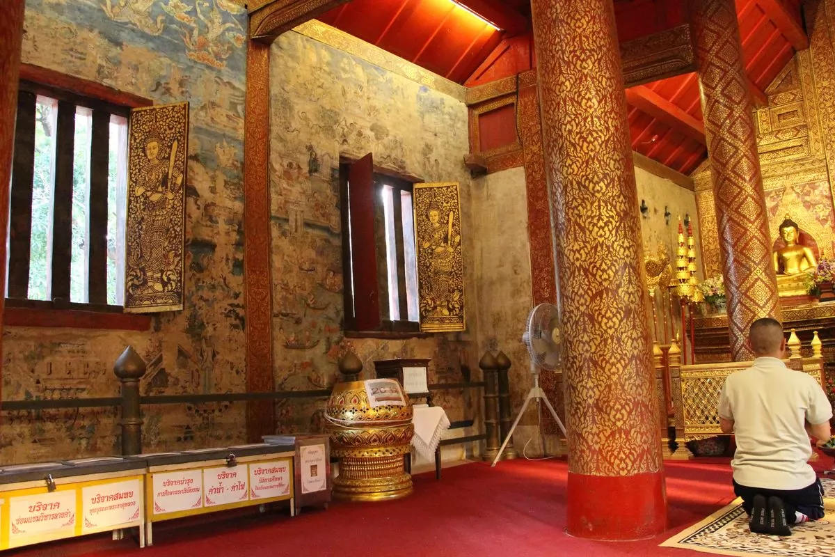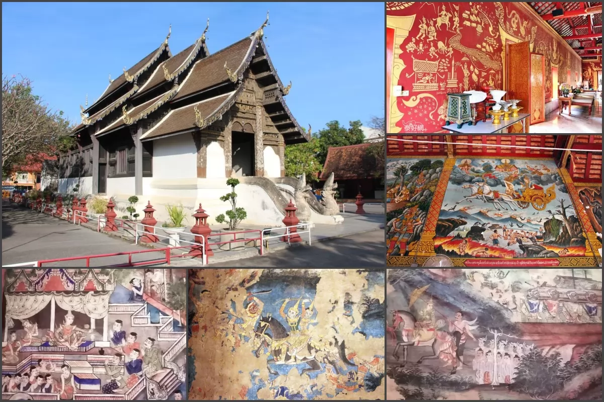 寺廟內匯聚蘭納時期的經典藝術品(木雕)和建築、以及繪畫作品,非常的細膩精緻,萊卡佛堂見到灰泥粉飾和壁畫,相傳這些壁畫是當地一位名叫傑山(Jek Seng)的藝術家所畫,內容多是佛教各派流傳關於釋迦牟尼在世事跡的通俗故事情節,以及泰北人民日常生活的生動描繪,因此深受許多外國遊客的喜愛。