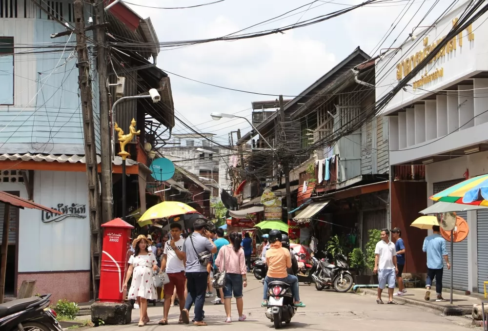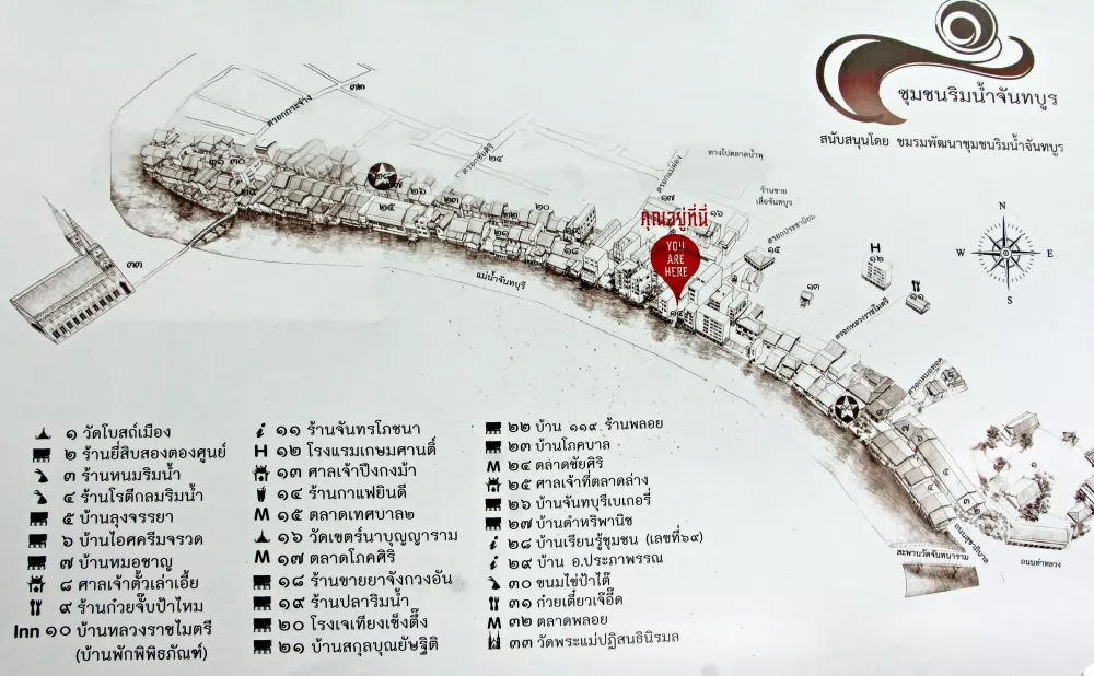 尖竹汶最有歷史感、最具文藝氣的河畔古城區(ชุมชนริมน้ำจันทบรู), 1公里長的馬路上,300多年貿易的珍貴遺產,建築物有著獨特的文化標籤。如今這裡已然成為一大旅遊景區,到尖竹汶府旅遊,必定不可錯過這裡。