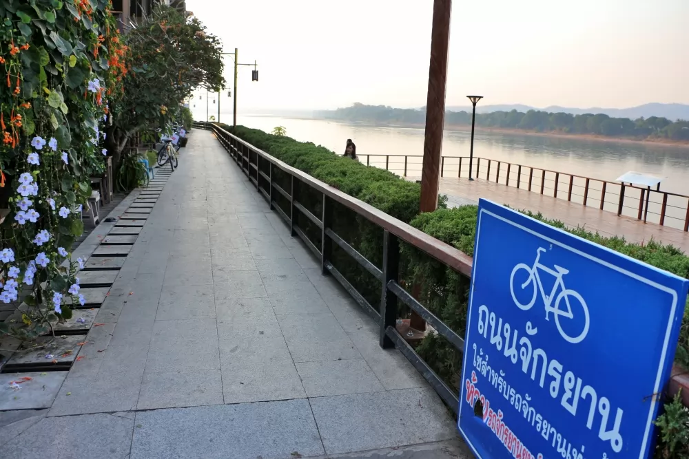 客人不多,環境安靜,你可以安靜的看書或划手機,或是看著對面的湄公河發呆,或是看著步道在行人或自行車騎士穿梭而過,感受清康人的慢生活。
