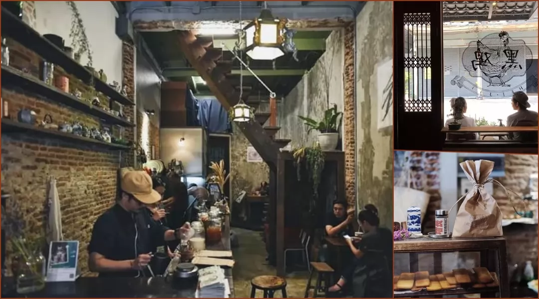 店的特色在於曼谷並不多見的中式復古風格,正門口的傳統屋簷,中式對門及櫥窗上大大的黑雞二字,風格雖說老套,但適合拍照。
