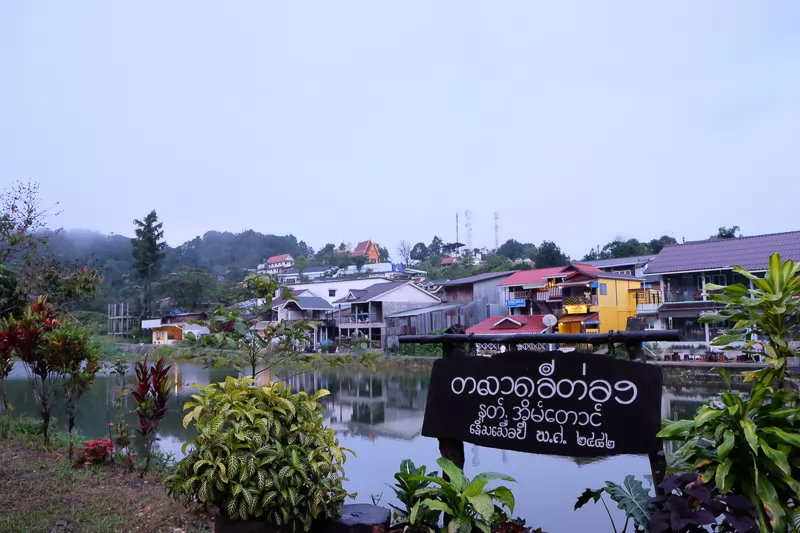 被山巒環抱的愛泰村(Moo Ban Rak Thai;บ้านรักไทย),華人稱之為密窩村,有座小湖泊,寧靜村莊及藍天白雲的倒影,如詩如畫的美景讓人流連流返。
