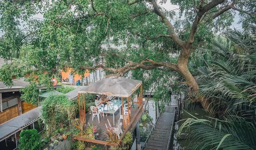 曼谷樹屋(Bangkok Tree House)是知名的住宿點,來這裡可邊點杯咖啡(80銖)或吃點東西,邊觀賞樹屋的裝置,以及花草的搭配。