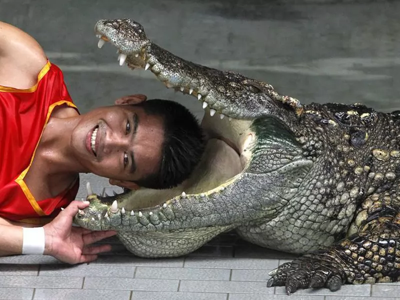 鱷魚農場有一個可容數百人的表演場,每日有定時的鱷魚表演,緊張又搞笑,其中表演員忽而把手探入張開布滿利齒的鱷魚口中,忽而把頭伸入鱷魚口內,驚險萬分。成為觀光客來泰國必看的表演秀。