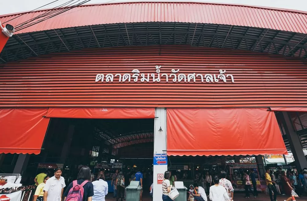 岸邊廟會水上市場(ตลาดริมน้ำวัดศาลเจ้า),位於湄南河東方的岸邊,即清拉(chiang rak)運河的源頭的北部。如果說得更確切一點,市場在一所廟會之中,該廟會修建大城王朝初期,且該廟會的土地公神長久以來得到當地居民的信仰。
