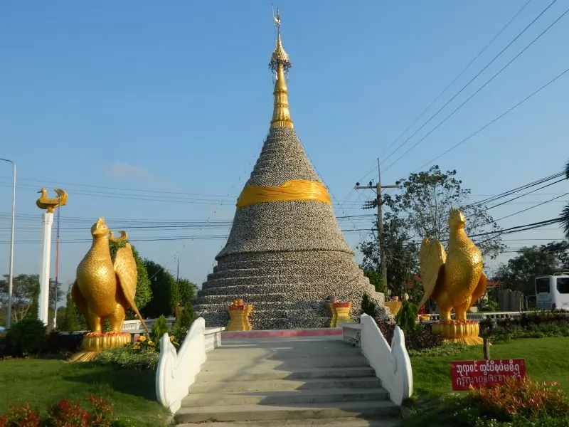 貝殼佛塔有2座,第一座位於寺廟的入口處,第二座位於寺廟內。在寺廟周圍有一個很大的水池,裡面還有很多寺廟養殖的鯊頭鯰,龜池就在魚池旁邊。遊客可以購買飼料餵魚和烏龜。