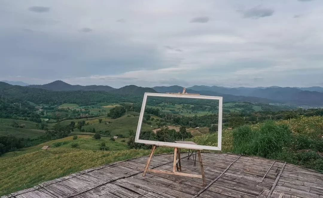 泰國人的創意在這裡也充分展現,擺放一個空白的框架,從中看去的山景就是一幅美麗的畫像,也可以站在框裡拍張美照。