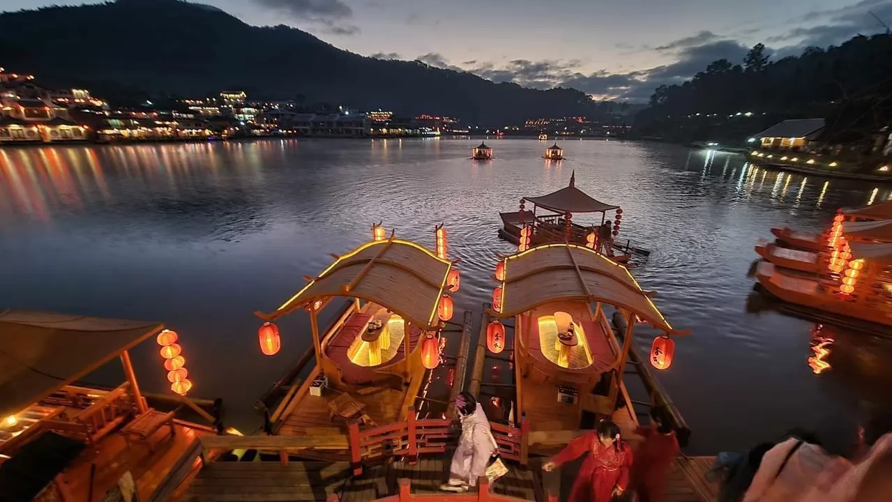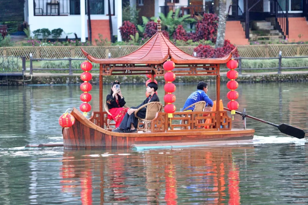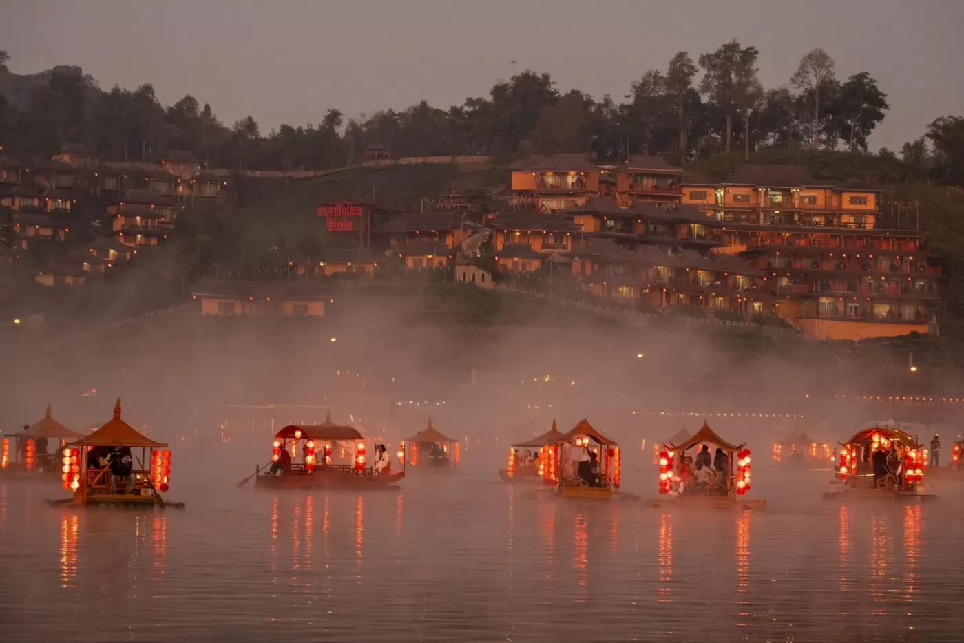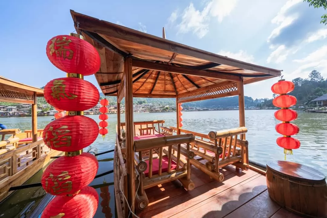 舢舨遊湖:中式裝潢的舢舨更為湖景增添魅力,甚至可說是畫龍點晴,讓景色更加立體化,同時也讓遊客多了個遊湖的體驗。(早晚是舢舨的熱門時段,以人頭計費,價格隨著季節有一些波動,單人380銖、2人400銖;3人500銖;4人550銖;5人650銖。搭乘時還暖心的提供顧客熱茶。)