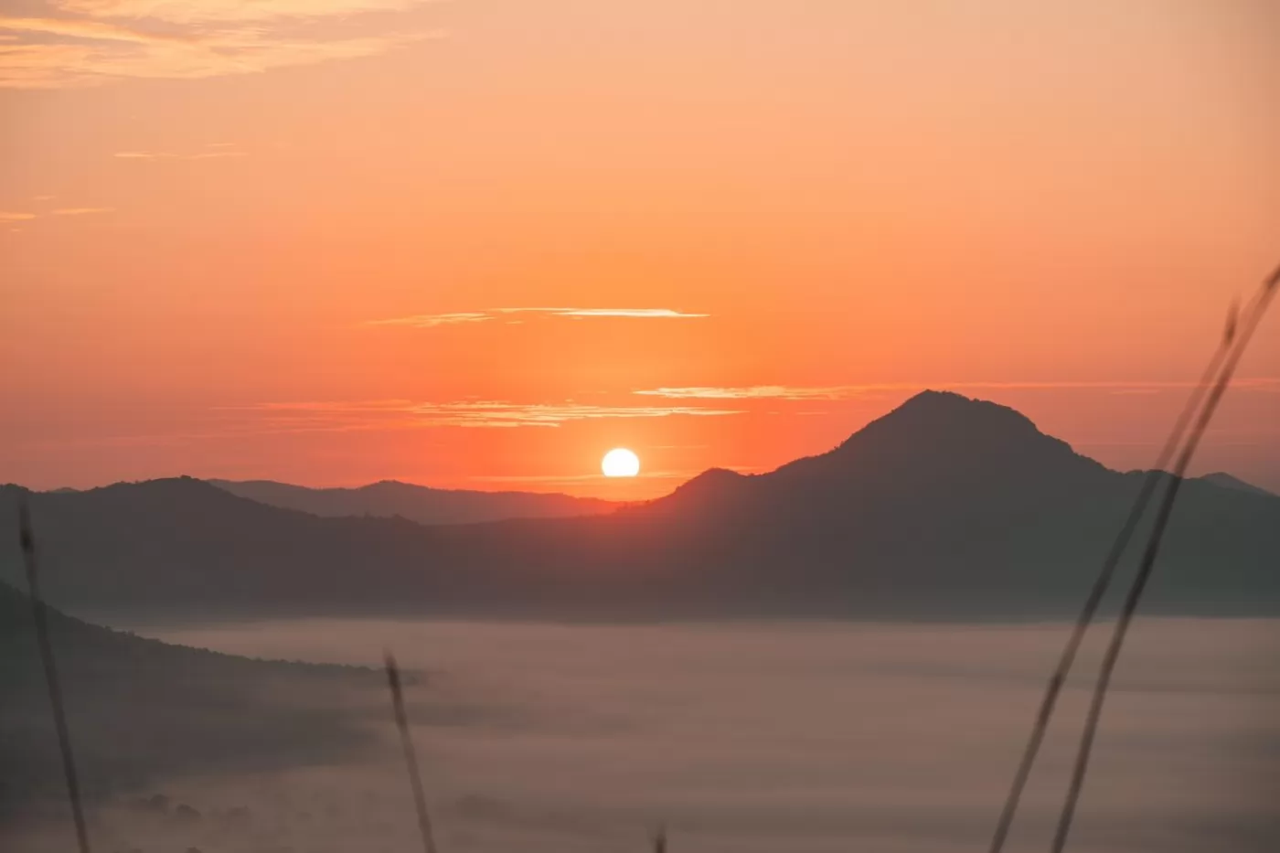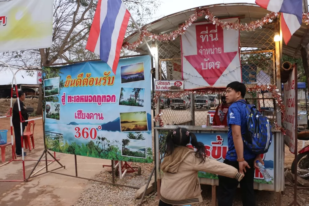 清晨,你可以佈施僧人祈福,但不能錯過到看普陀山(Phu Tok)雲海日出。
